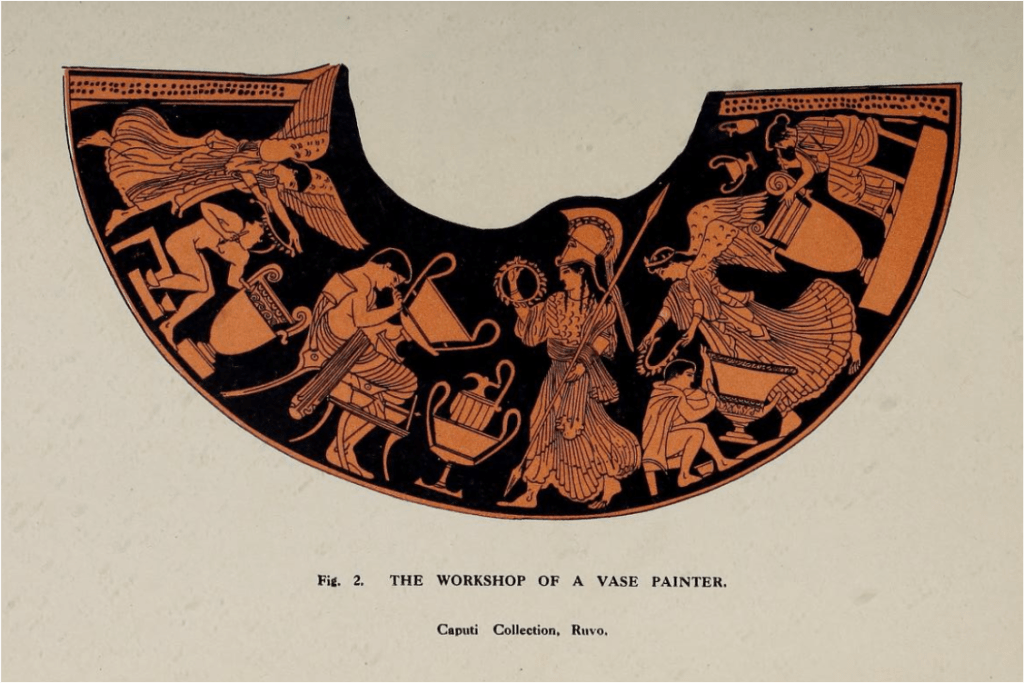 Kehrberg, I., ‘The Potter-Painter’s Wife: Some Additional Thoughts on the Caputi Hydria’, in Hephaistos 4 (1982), pgs. 25-35.