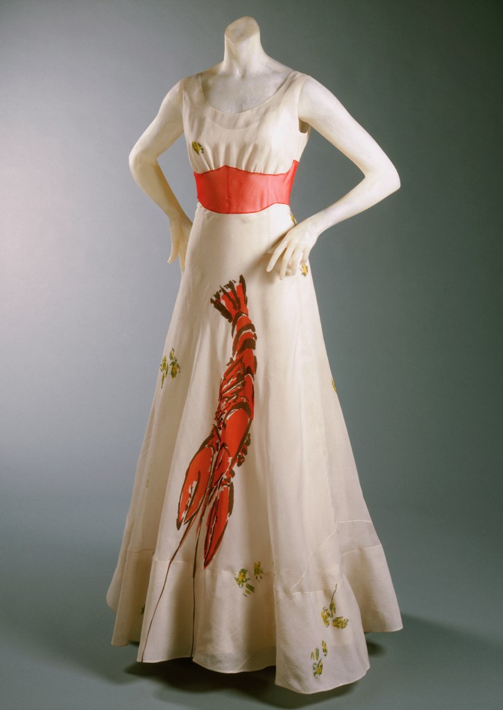It is through this lens that the V&A’s own holdings come into sharper focus. Widely regarded as the most significant collection of Schiaparelli garments in Britain, they enable the exhibition to present some of her most innovative and experimental designs, including the Tears evening dress (1938), with its trompe-l’œil print giving the illusion of shredded animal flesh, developed in collaboration with Dalí. Considered one of her most celebrated designs, it is seen by some as anticipating a “punk” sensibility several decades before the movement emerged.